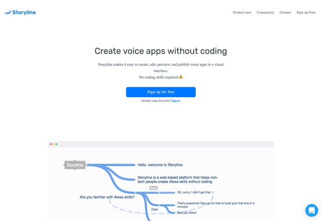 无需代码知识,你就可以在Storyline上创建语音应用,就像在亚马逊的Alexa上那样。这款可视化的工具能够帮你完成整个语音应用的设计。