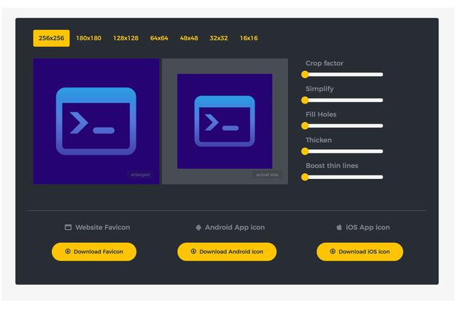 LogoCrunch是一款LOGO制作工具,可以生成多个分辨率的LOGO,其中低分辨的版本能够非常清晰。用来制作Favicon效果会很不错。