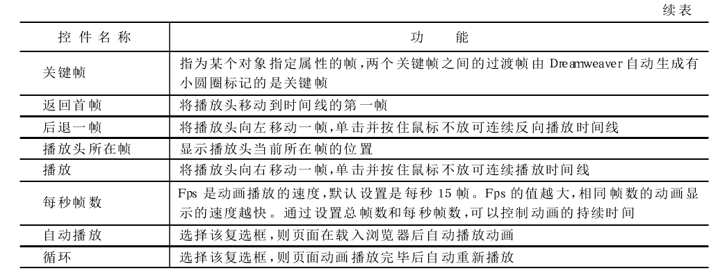 "Timeline(时间线)”面板描绘了层和图像随时间变化的属性。在菜单栏中选择“Window"→"Timelines"命令可打开时间线面板。时间线面板所包含的控件如图所示。